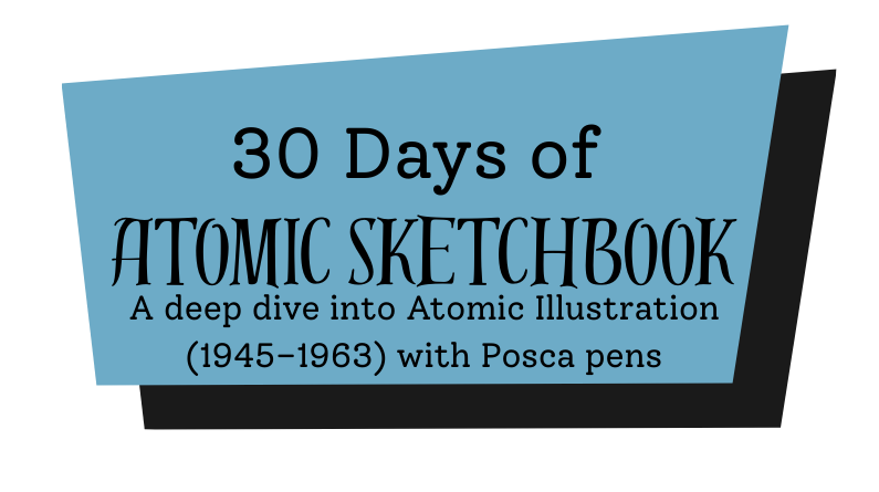 I’m documenting a 30-day deep dive into Atomic Age illustration — bold linework, flat color, and mid-century character studies, all in Posca. Watch the style evolve day by day on Instagram.